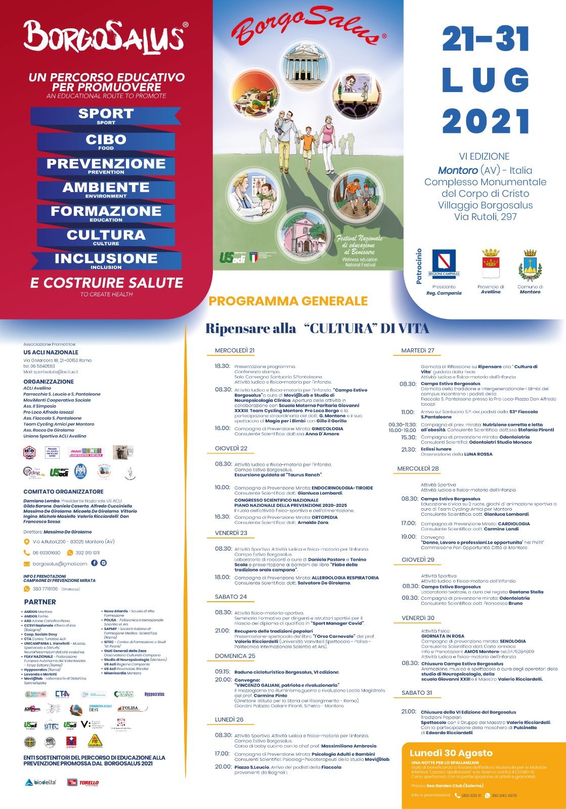 Si svolgerà a Montoro (AV) il Congresso Scientifico Nazionale “PIANO NAZIONALE DELLA PREVENZIONE 2020-2025 – IL RUOLO DELL’ATTIVITÀ FISICO-SPORTIVA E DELL’ALIMENTAZIONE” dal 21 al 31 luglio 2021 in occasione del Borgo Salus – Villaggio Itinerante di Educazione al Benessere.